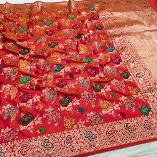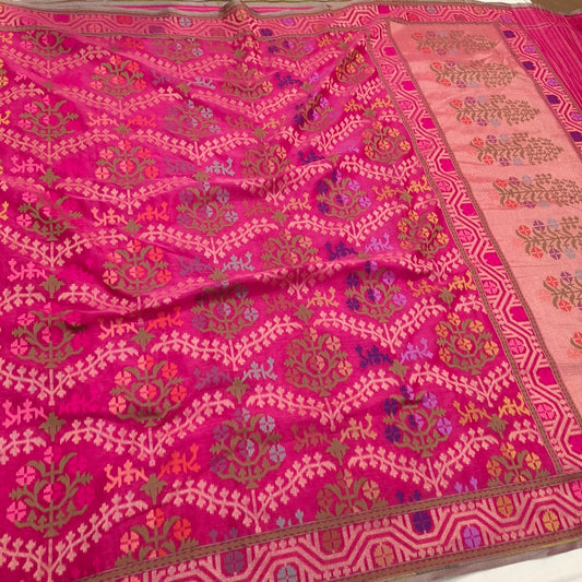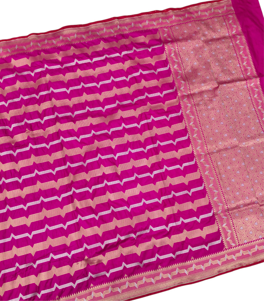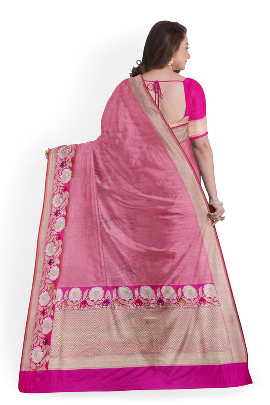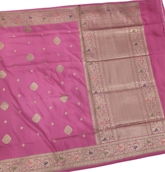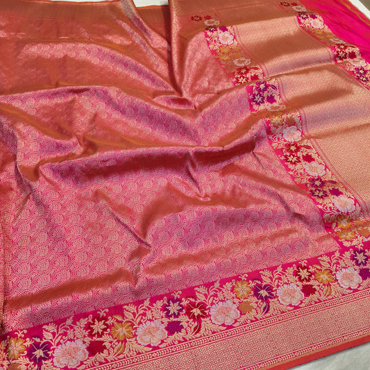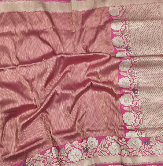 Pink Pure katan silk handwoven jangla exclusive banarasi saree