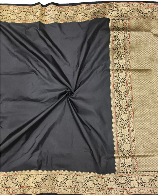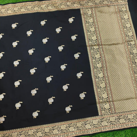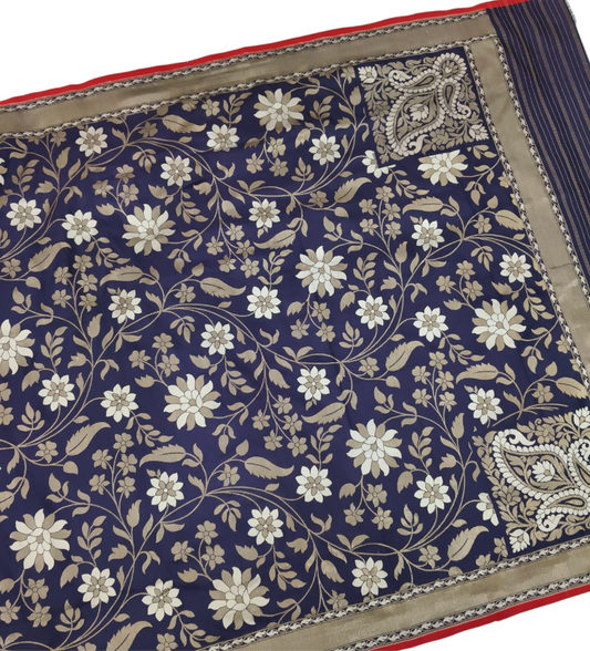 Navy blue pure katan silk cutwork jamdani banarasi saree