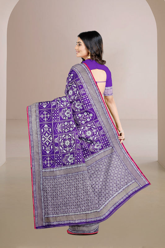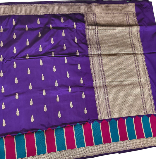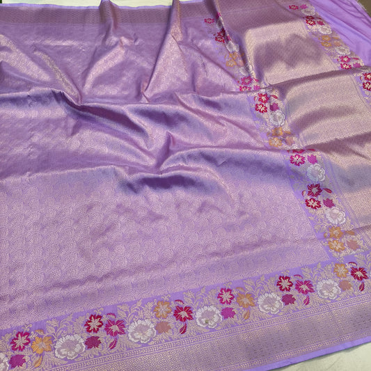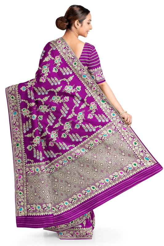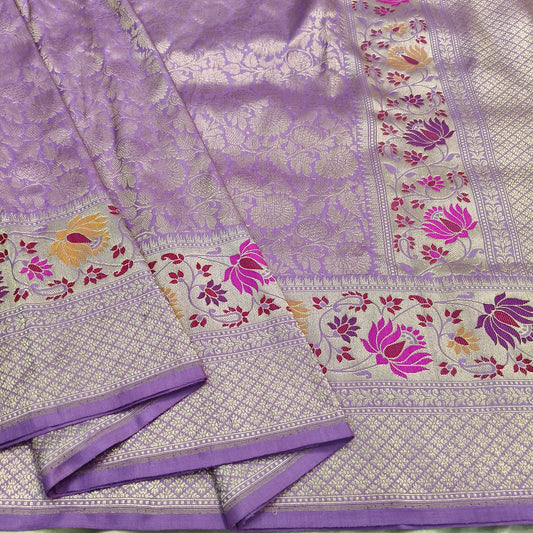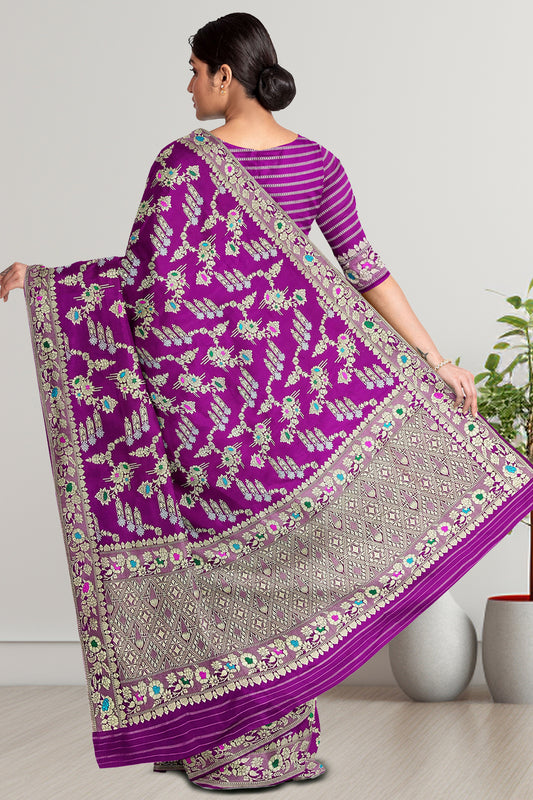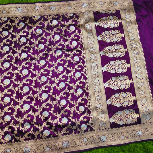 Purple Pure Katan Silk Handwoven Banarasi Saree