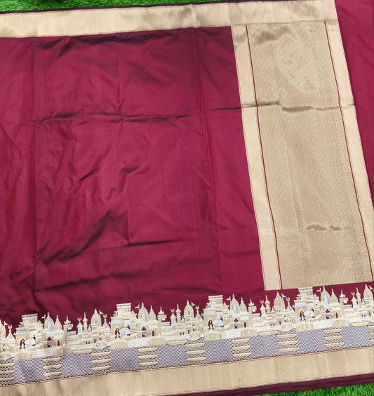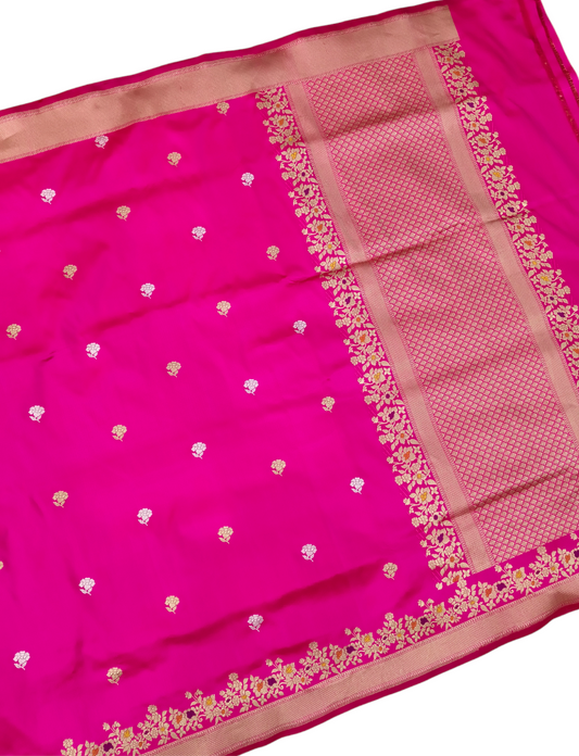 Dark Pink Paithni Border Pure Katan Silk Saree