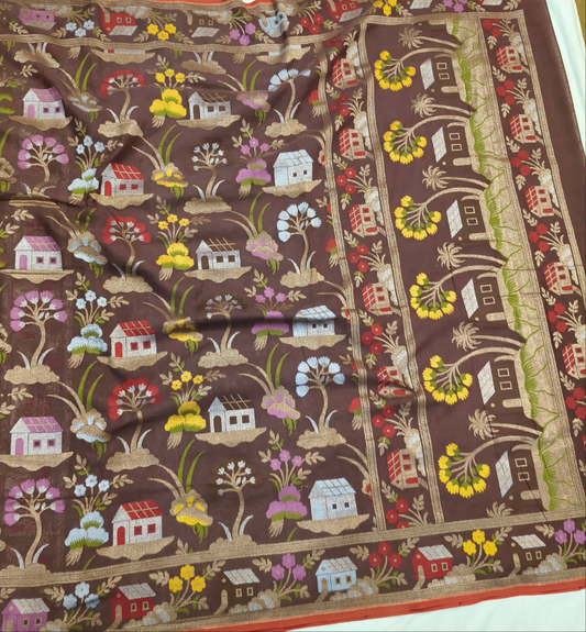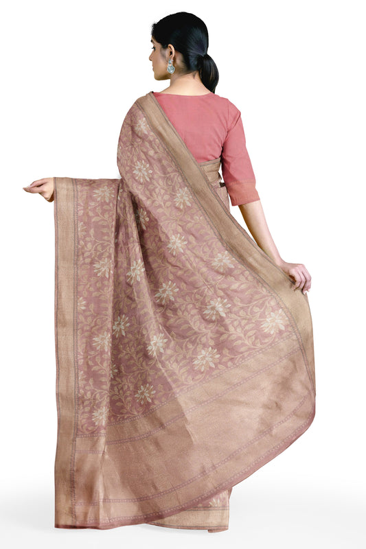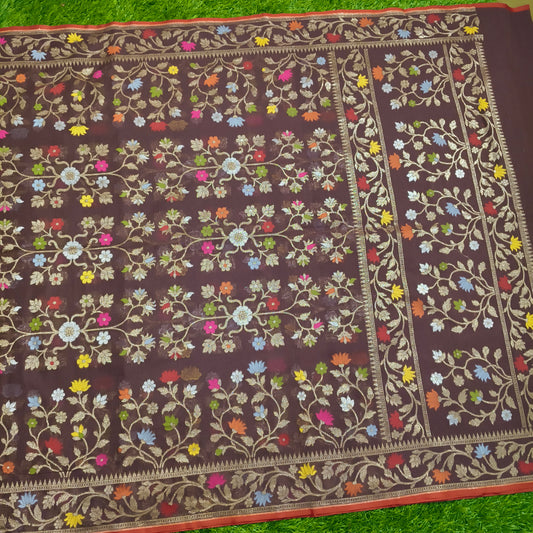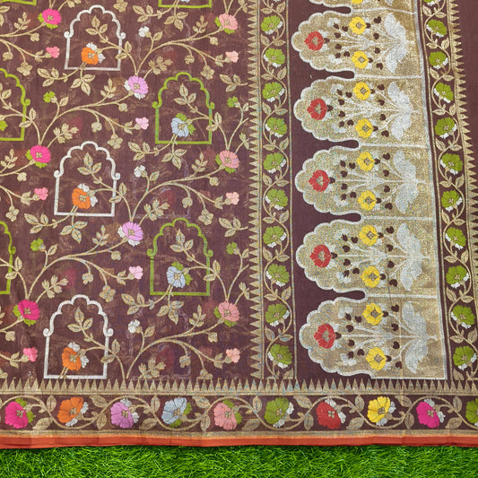 Brown pure cotton ektara tilfi jamdani cutwork jaal banarasi saree