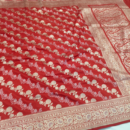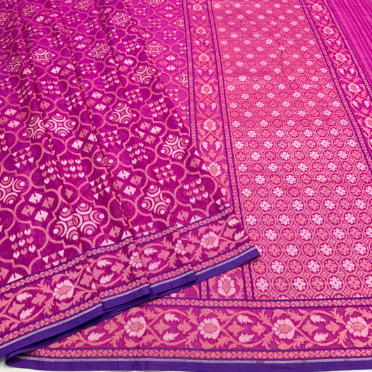 Majenta Pure katan silk handvowen kadwa jaal banarasi saree