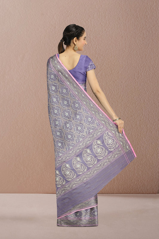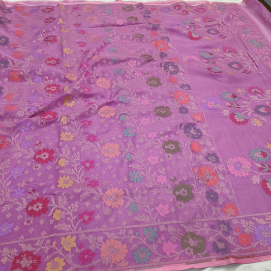 Lavender pure cotton jamdani cutwork jaal banarasi saree