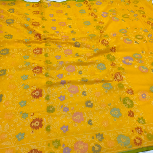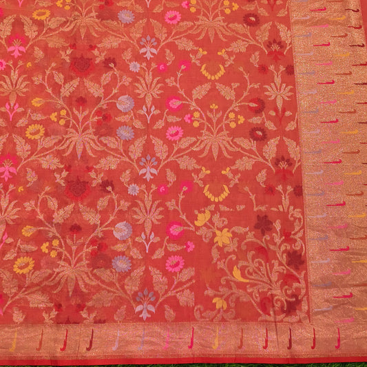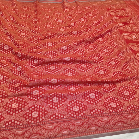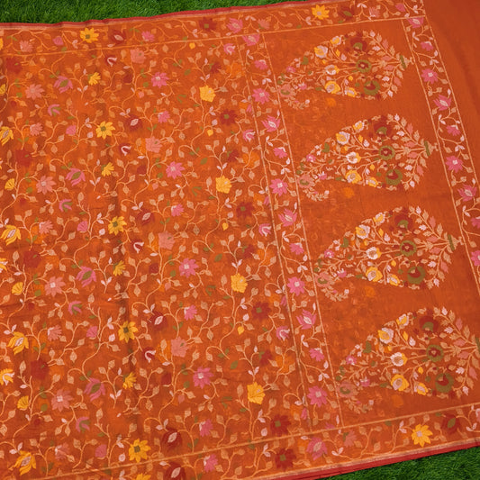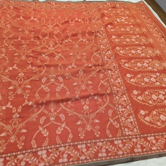 Orange Pure cotton ektara tilfi jamdani cutwork jaal banarasi saree