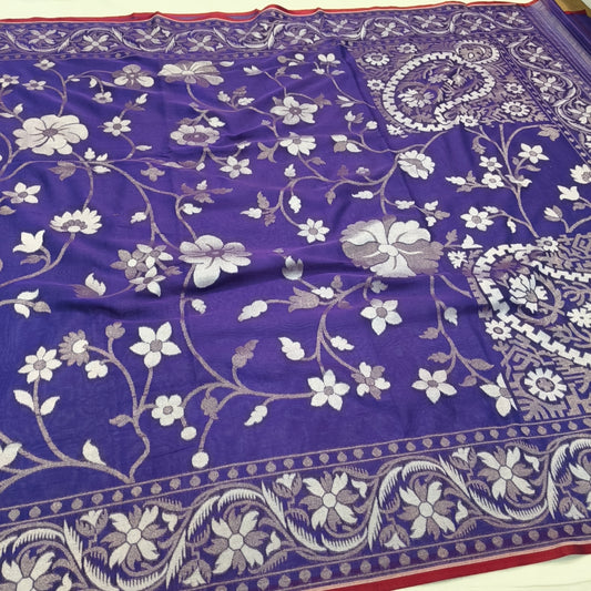 Purple pure katan silk handloom cutwork jaal banarasi saree