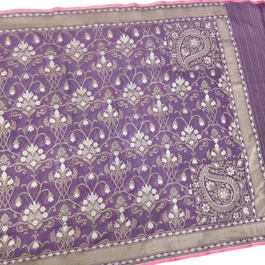 Purple pure katan silk cutwork rangkaat handloom banarasi saree