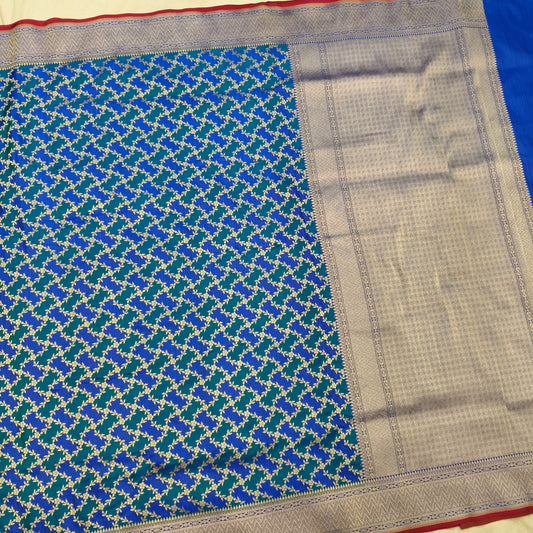 Royal blue pure katan silk cutwork rangkaat handloom banarasi saree