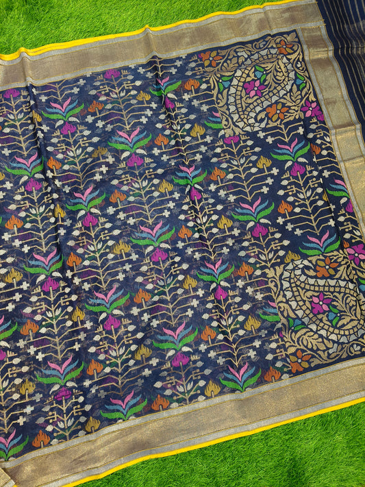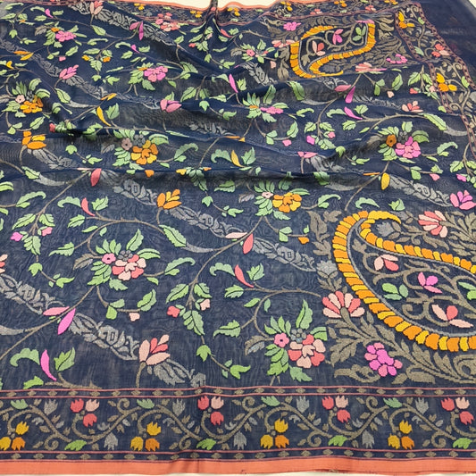 Navy blue Realzari pure cotton ektara jamdani exclusive banarasi saree