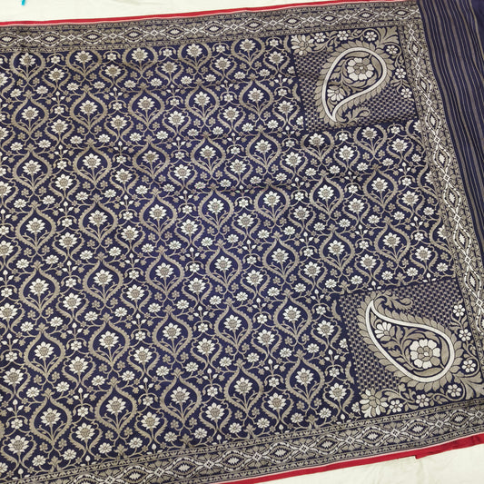 Navy blue pure katan silk ektara jamdani cutwork jaal banarasi saree