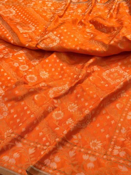 Organge Banarasi Kora Jamdani Silk Handwoven Saree