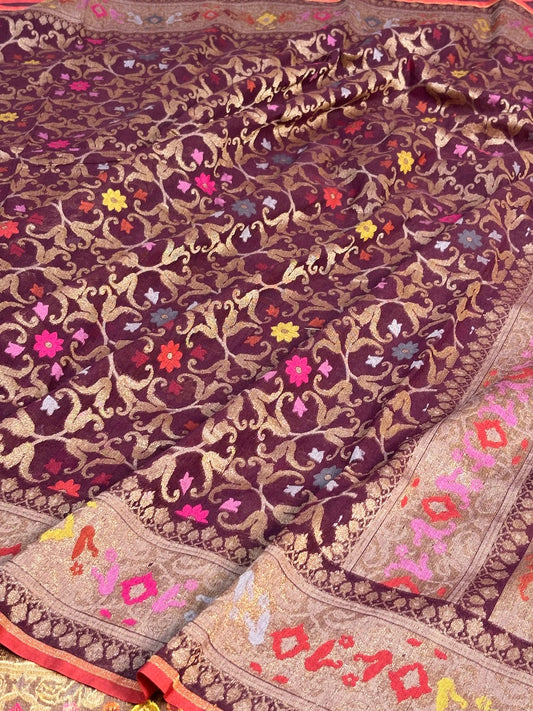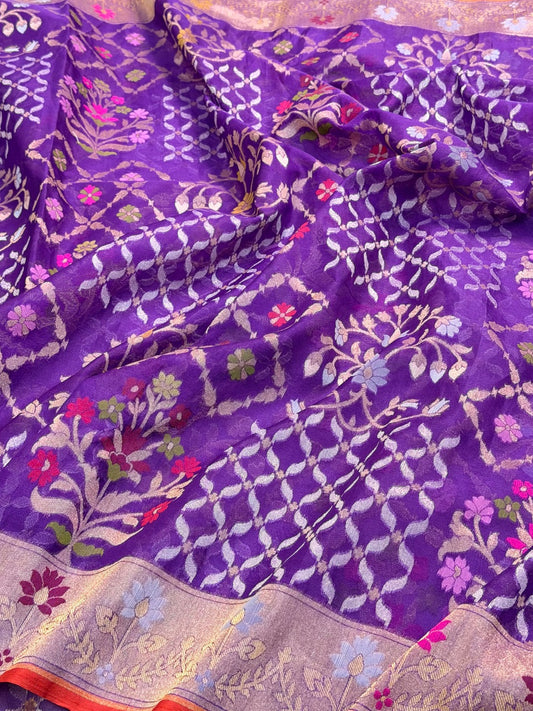 Purple Banarasi Kora Jamdani Silk Handwoven Saree