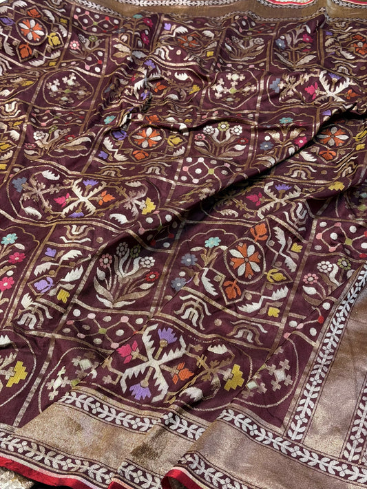 Brown Pure Banarasi Ektara Jamdani Silk Handwoven Saree