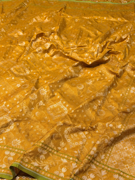 Yellow Pure Banarasi Ektara Jamdani Silk Handwoven Saree