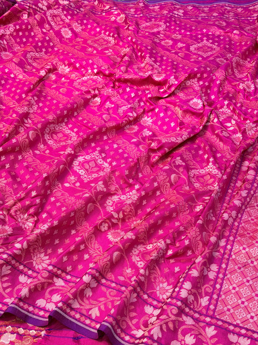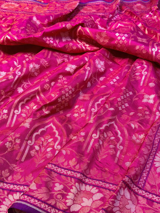 Rani Pink Pure Banarasi Ektara Jamdani Silk Handwoven Saree