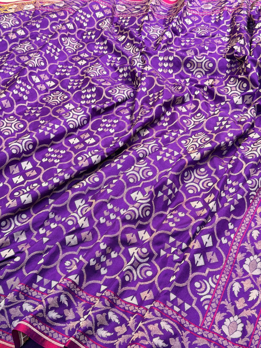 Purple Pure Banarasi Ektara Jamdani Silk Handwoven Saree