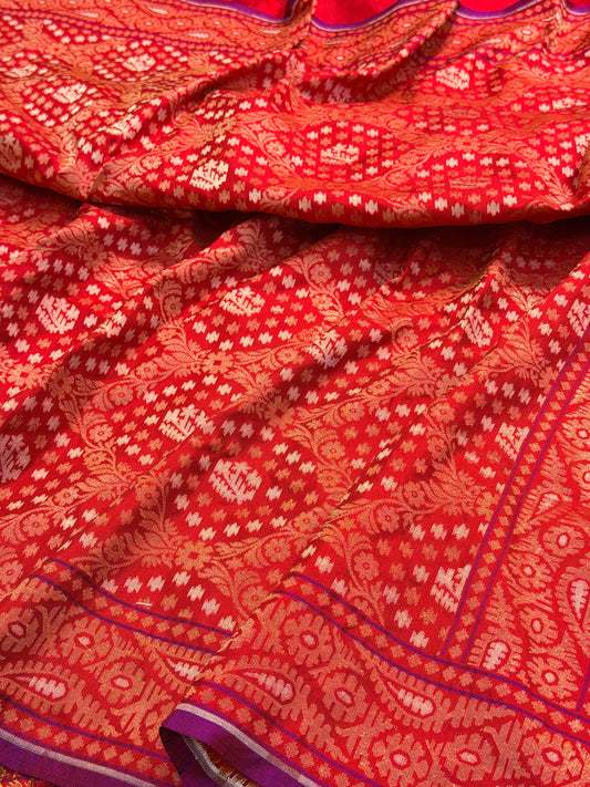 Red Pure Banarasi Ektara Jamdani Silk Handwoven Saree