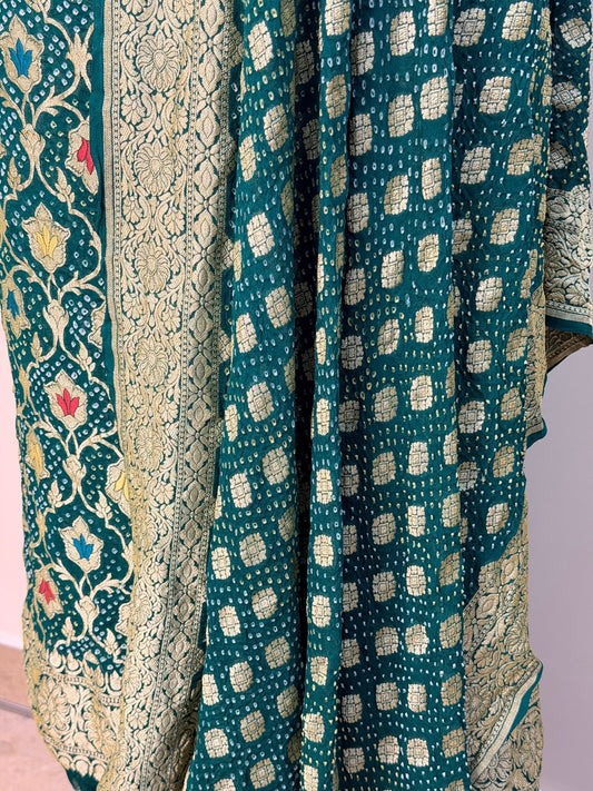 Bottle Green Chiffon Suit Set with Dupatta