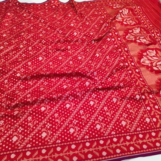Pure Katan Silk Ektara Cutwork Jamdani Banarasi Saree