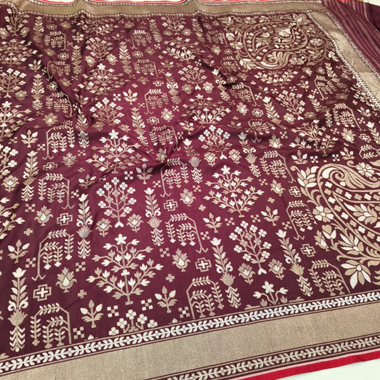 Pure Katan Silk Ektara Cutwork Jamdani Banarasi eSare