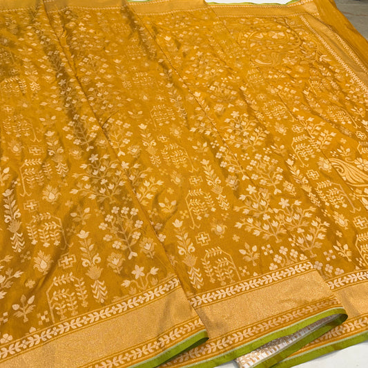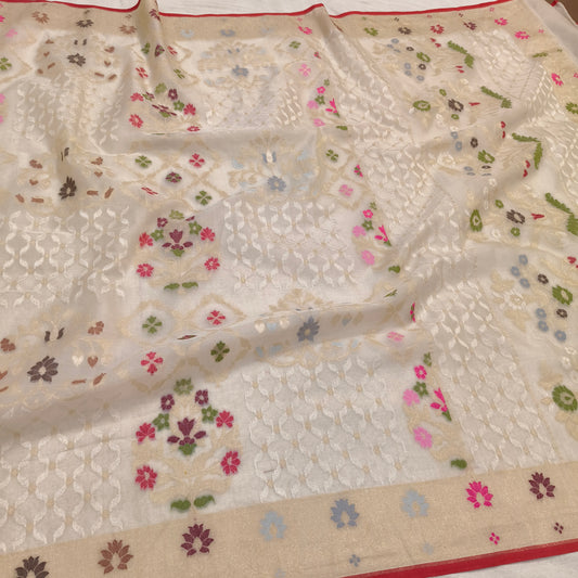Pure kora silk ektara jamdani cutwork jaal banarasi saree price