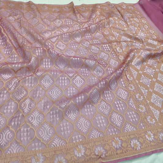 Pure Kora Silk Ektara Tilfi Cutwork Banarasi Saree