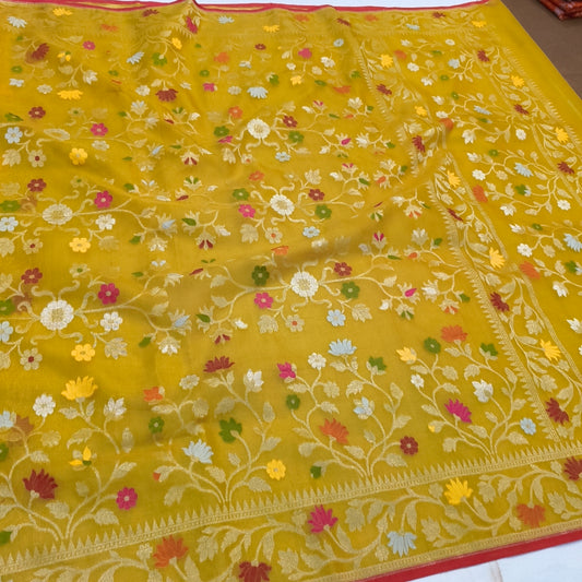 Pure Kora Silk Ektara Tilfi Cutwork Banarasi Saree