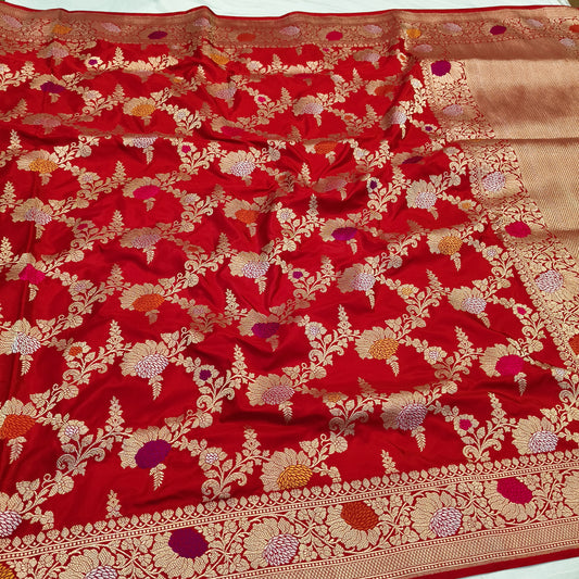 Pure katan silk handvowen jangla exclusive banarasi saree
