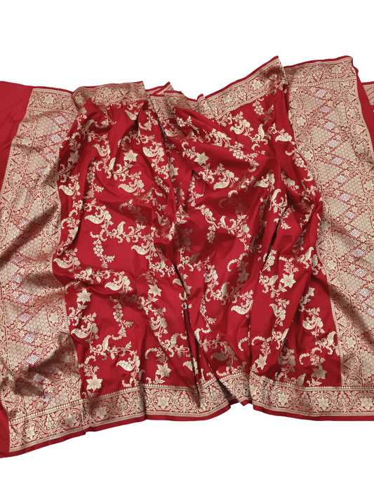 Red Pure katan silk lahenga set