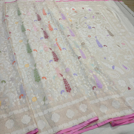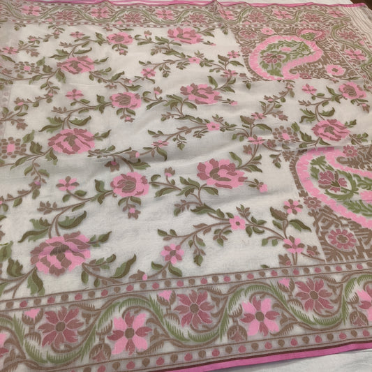 Pure Cotton Ektara Tilfi cutwork Jamdani Banarasi Saree