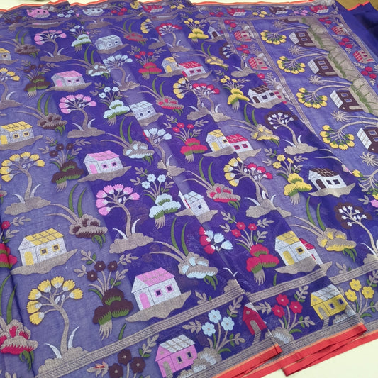 Pure Cotton Ektara Tilfi Jamdani Banarasi Saree