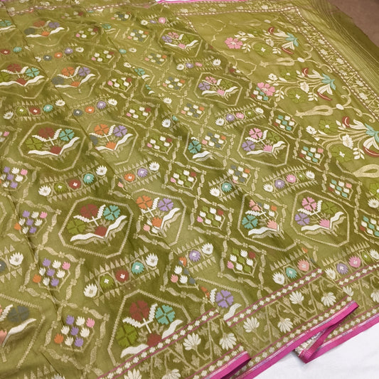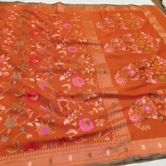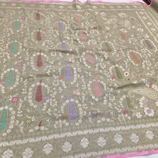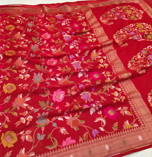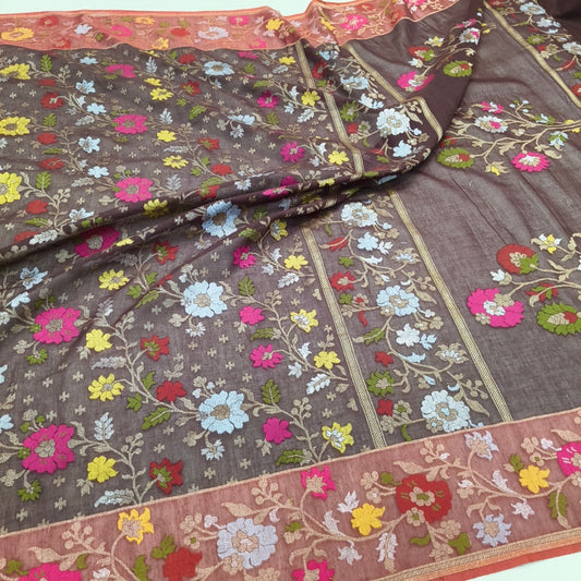 Pure cotton tilfi jamdani cutwork jaal banarasi saree
