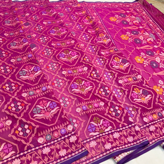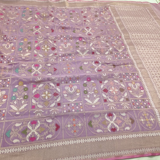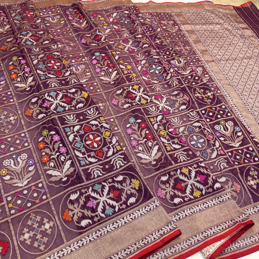 Purple pure cotton ektara tilfi jamdani cutwork jaal banarasi saree
