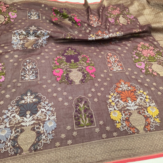 Pure Cotton Ektara Tilfi Jamdani Cutwork Banarasi Saree