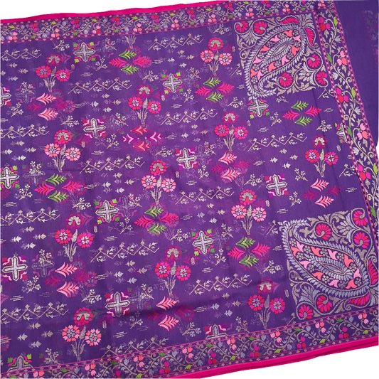 Purple pure cotton ektara tilfi jamdani cutwork jaal banarasi saree