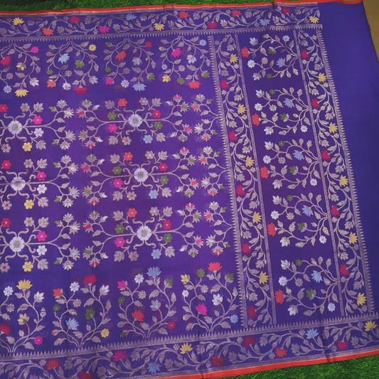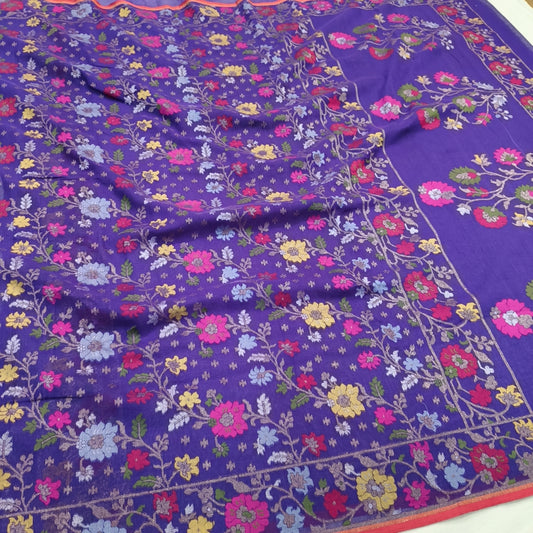 Real zari Purple pure cotton ektara jamdani banarasi saree