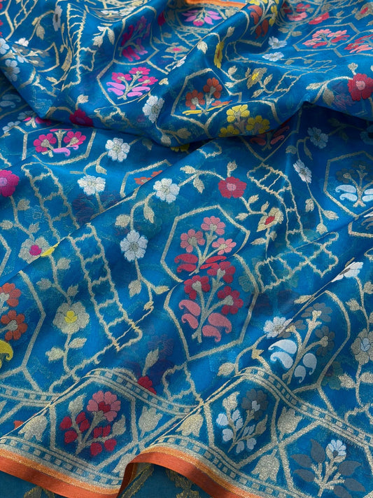 Royal Teal Banarasi Kora Jamdani Silk Handwoven Saree