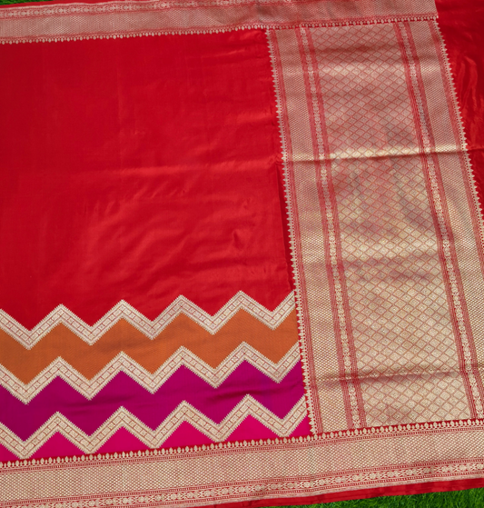 Red pure katan silk Rangkaat banarasi saree