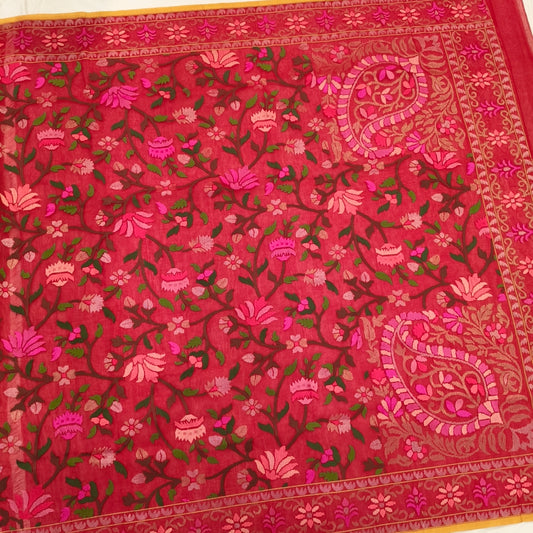 Real zari Red pure cotton ektara jamdani exclusive banarasi saree