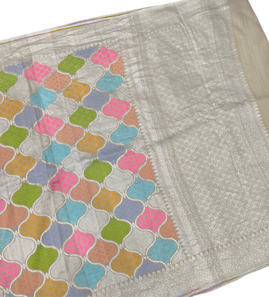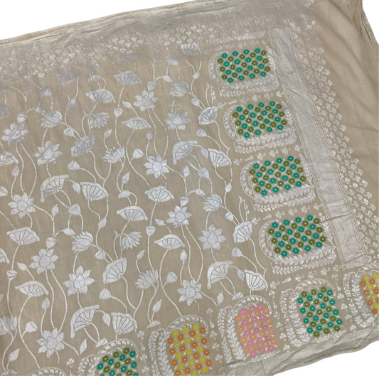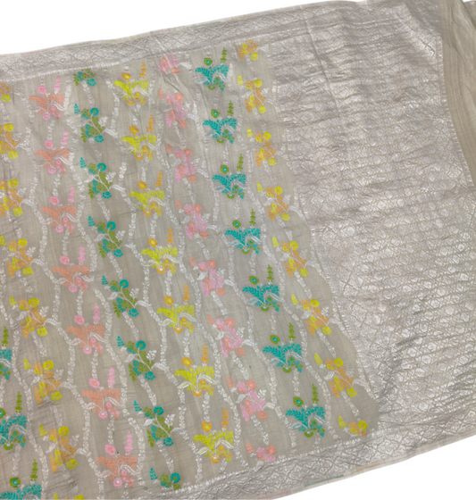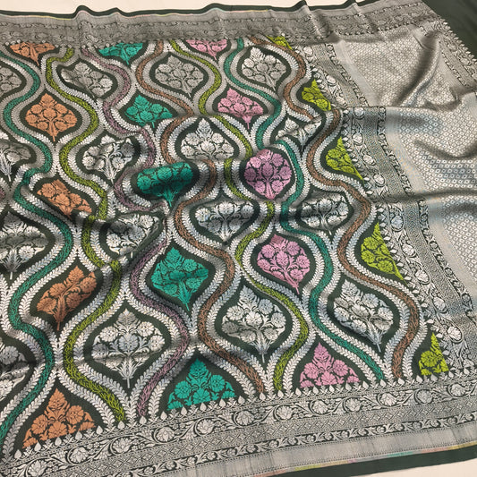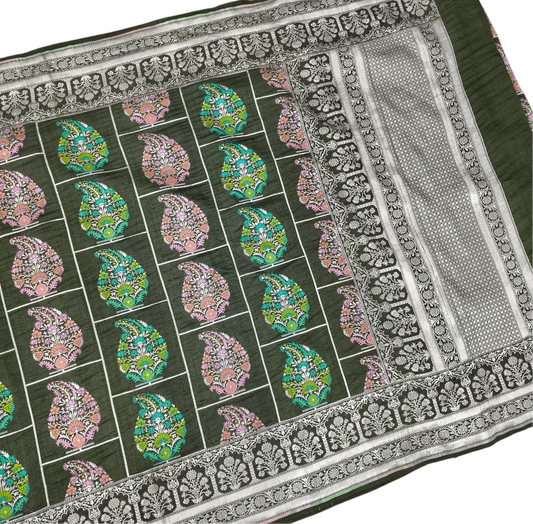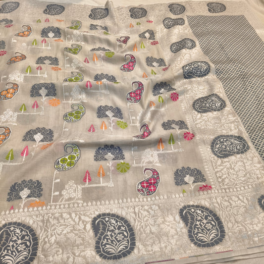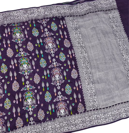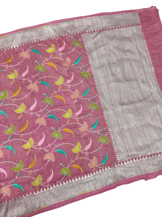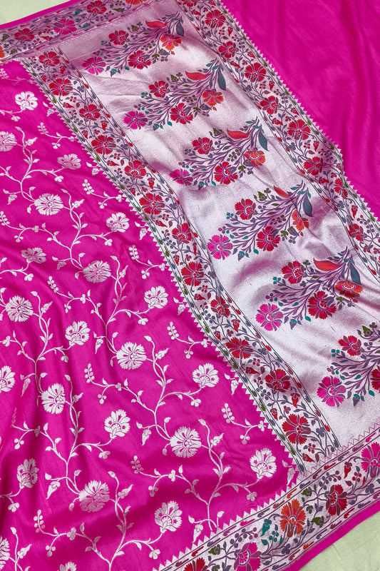 Fuchsia Megenta Pure Tussar georgette Banarasi Saree