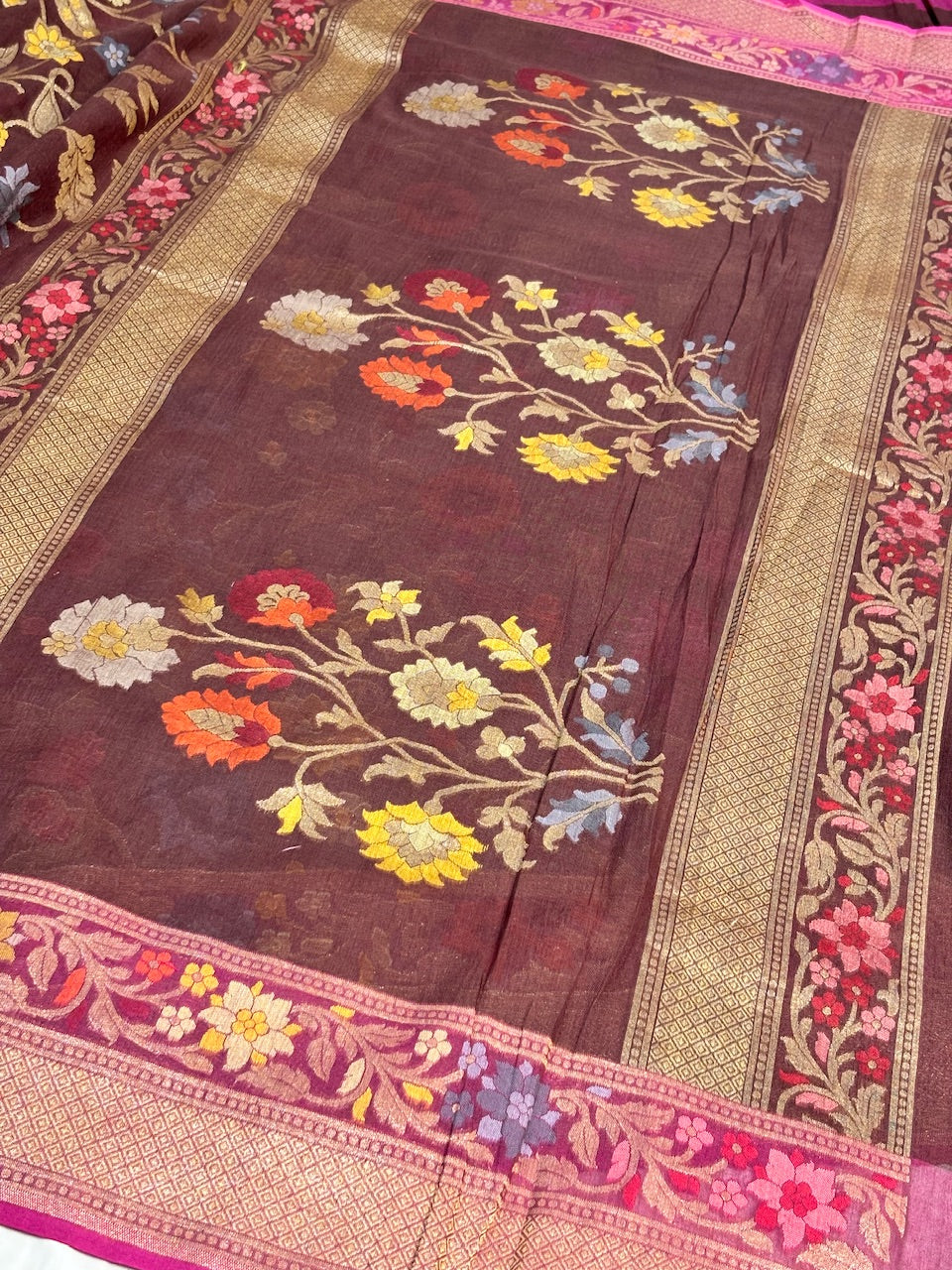 Coffee Brown Banarasi cotton Jamdani handloom Saree