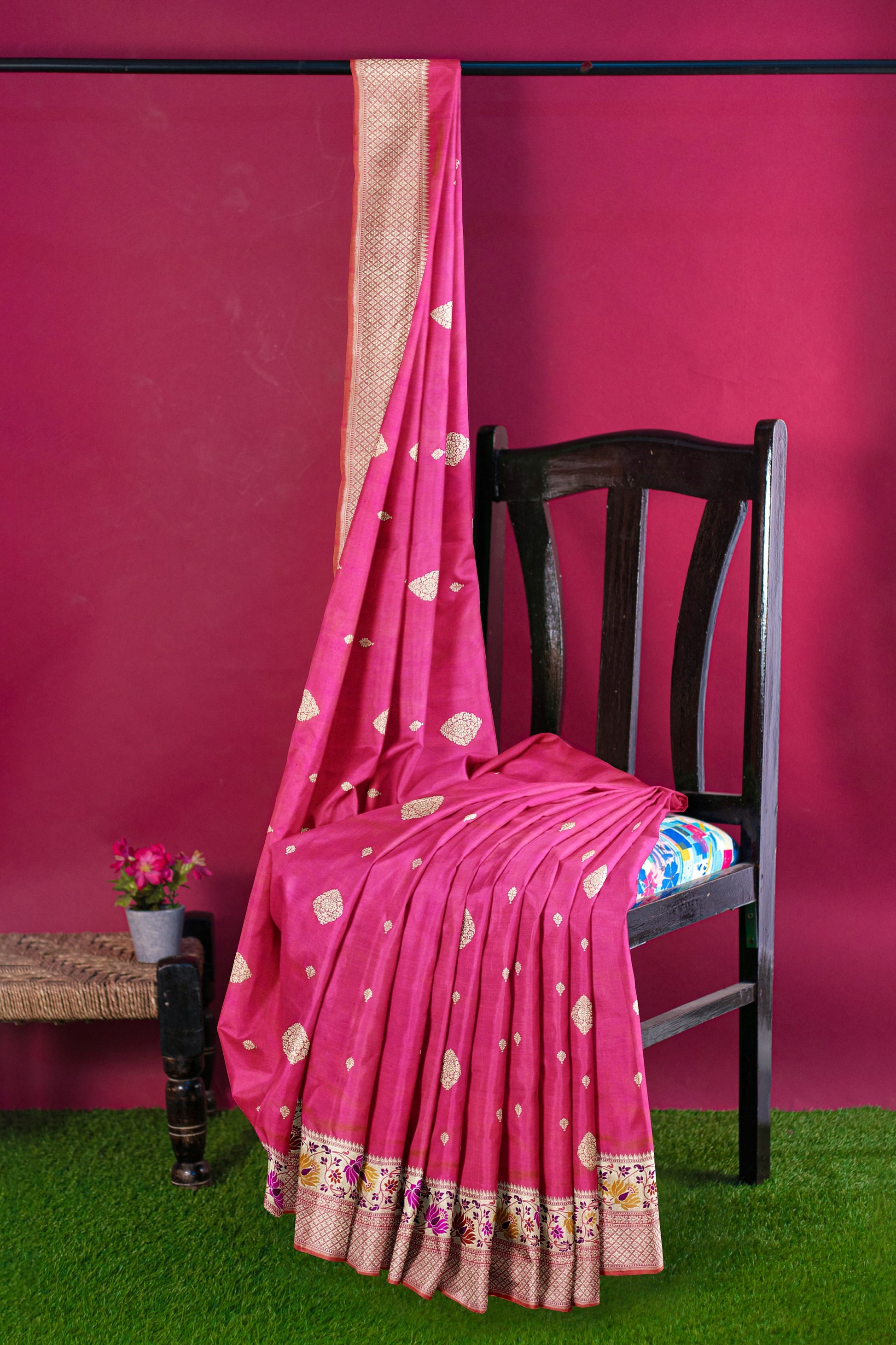 Dark Pink Paithni Border Pure Katan Silk Saree