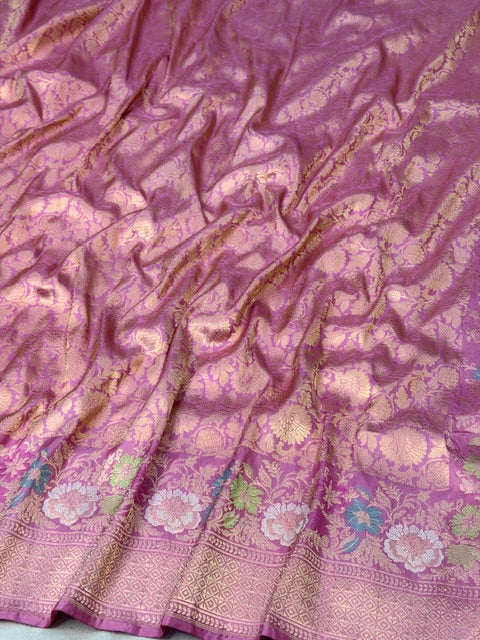 Dusty Rose Pink Pure katan silk handvowen banarasi saree