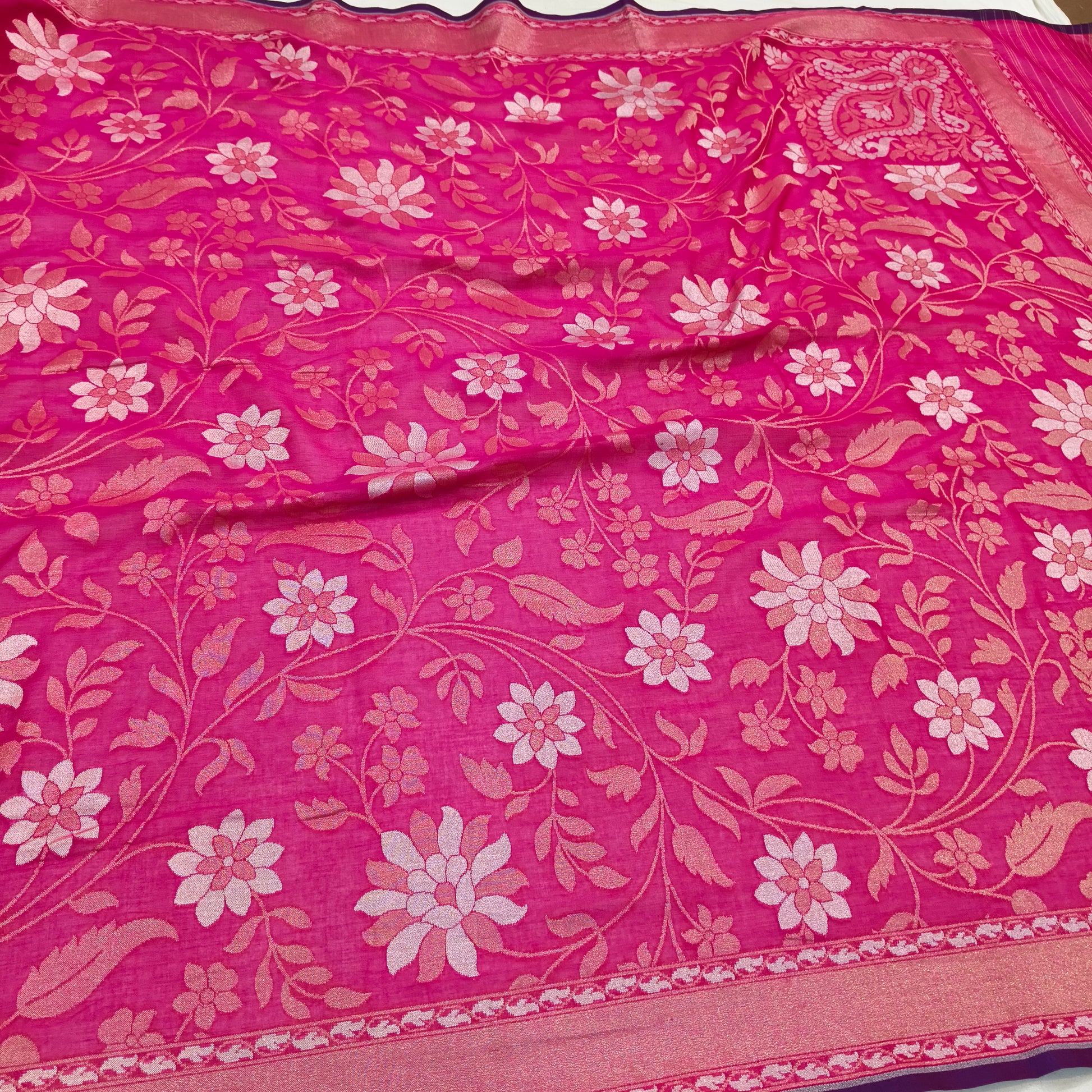 Pure Cotton Ektara Alfi Cutwork Jamdani Banarasi Saree
