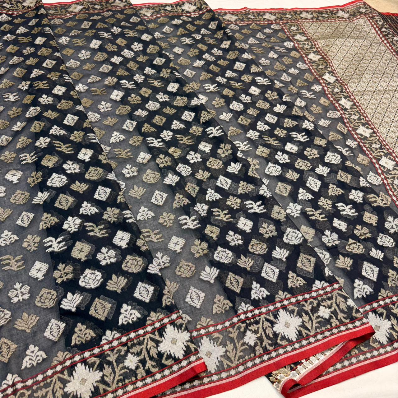 Pure Cotton Ektara Jamdani Cutwork Banarasi Saree