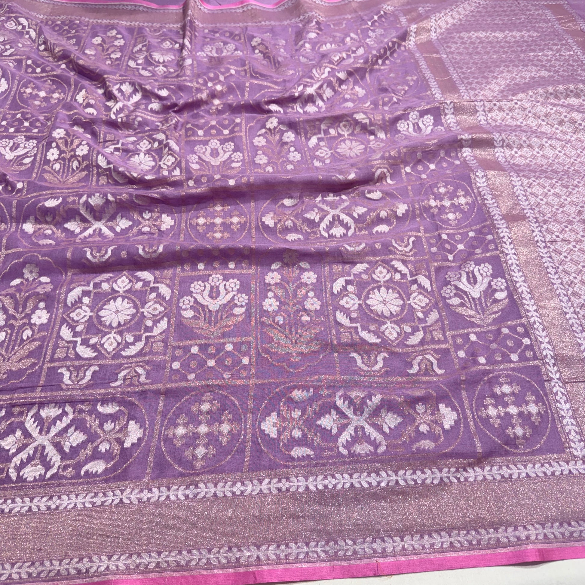 Pure Cotton Ektara Jamdani Cutwork Jaal Banarasi Saree