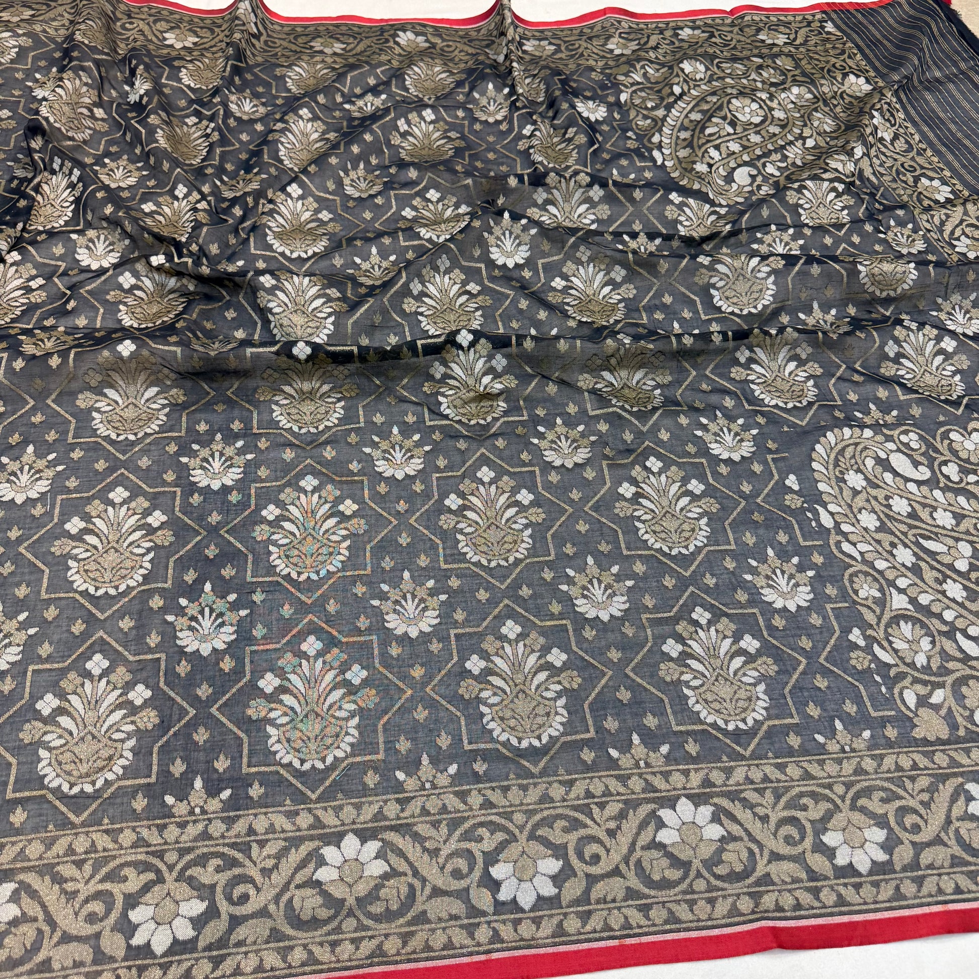 Pure Cotton Ektara Tilfi Jamdani Cutwork Banarasi Saree