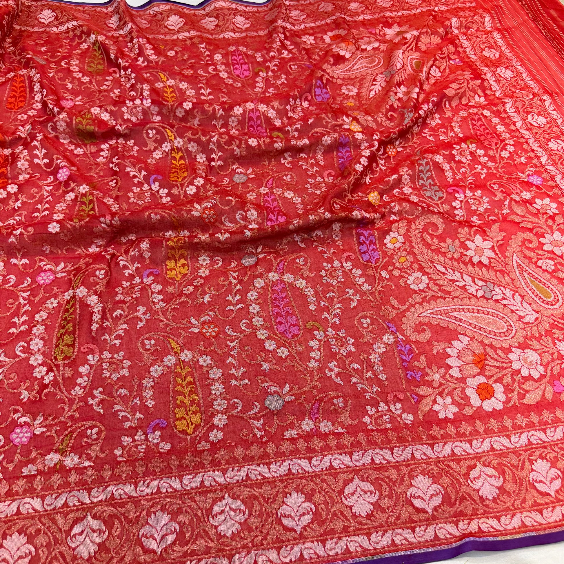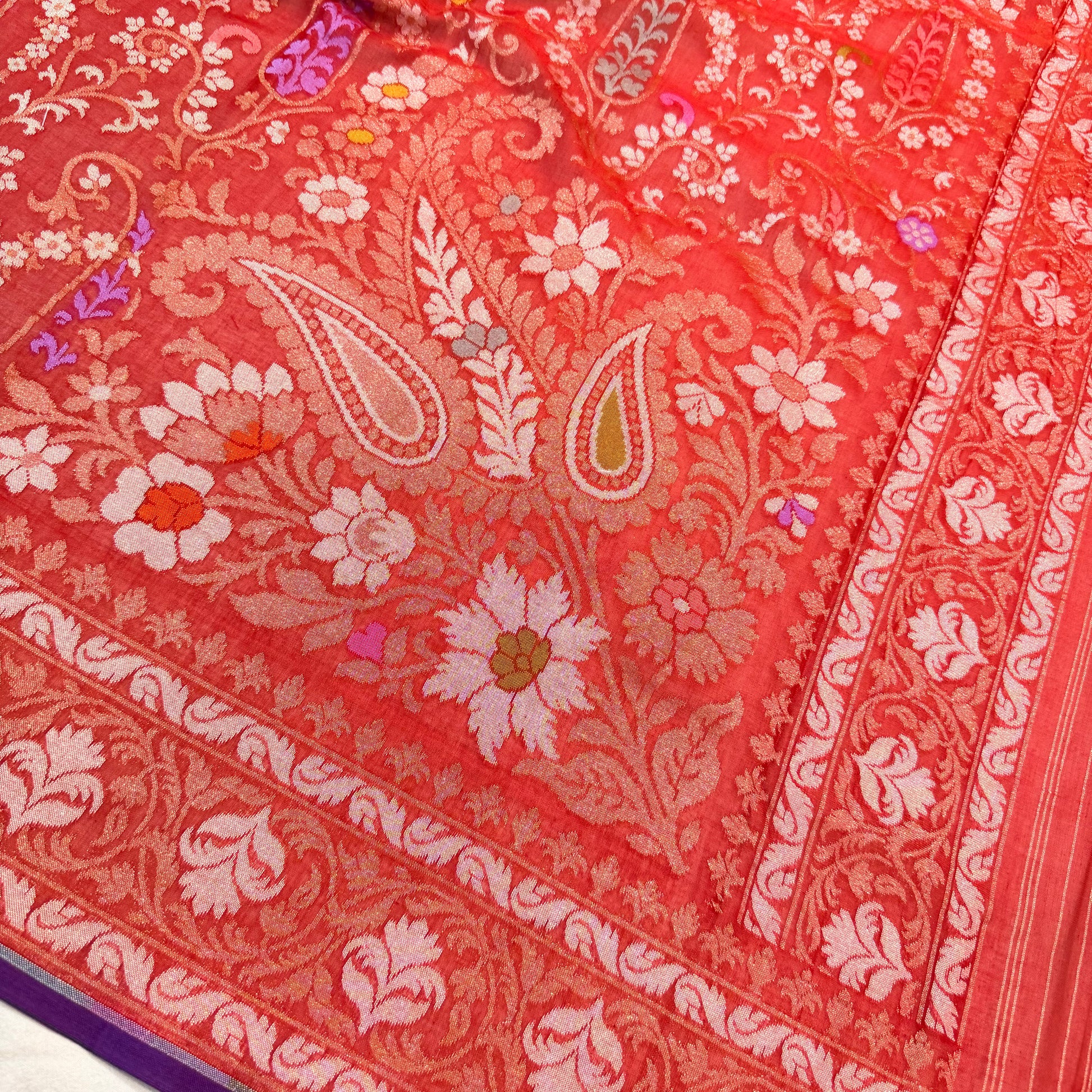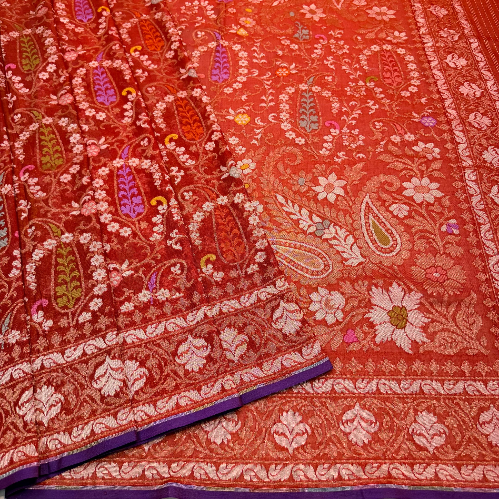 Pure Cotton Ektara Tilfi Jamdani Cutwork Jaal Banarasi Saree