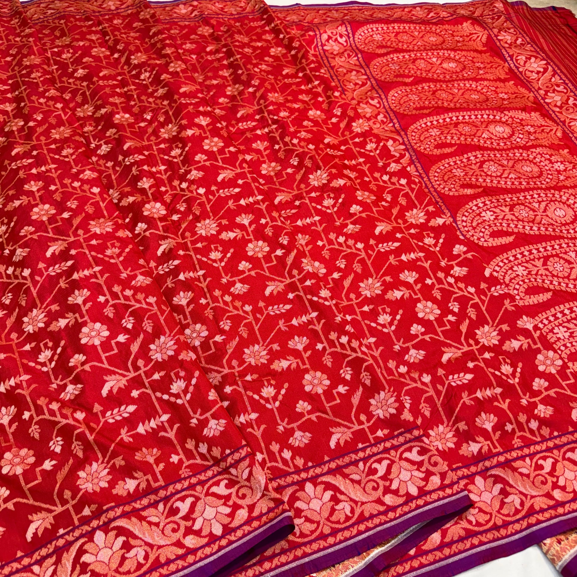 Pure Katan Silk Ektara Cutwork Jamdani Banarasi Saree