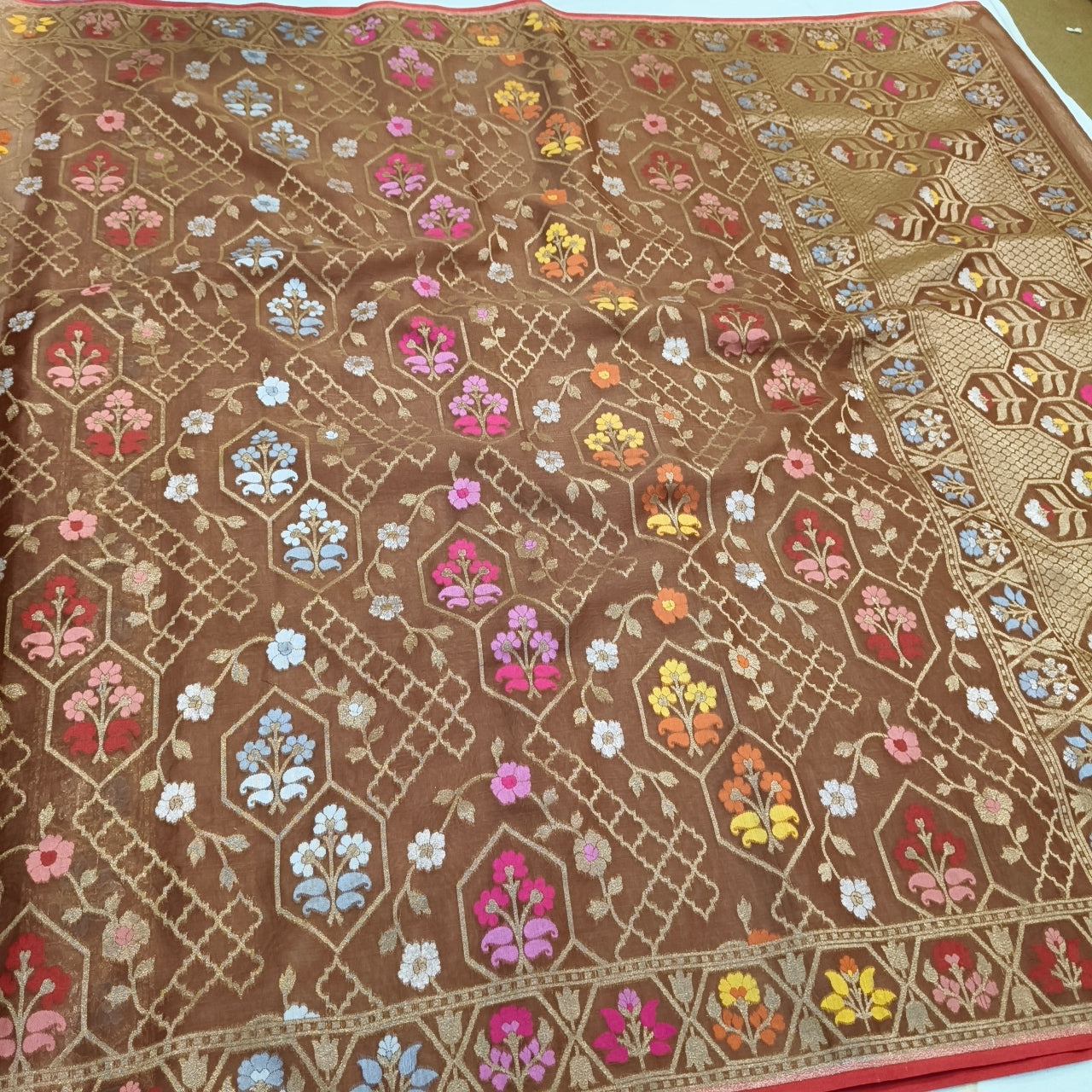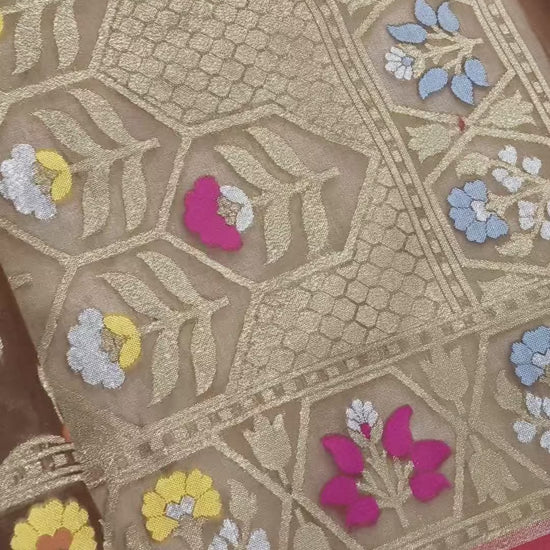 Pure Kora Silk Ektara Tilfi Cutwork Banarasi Saree