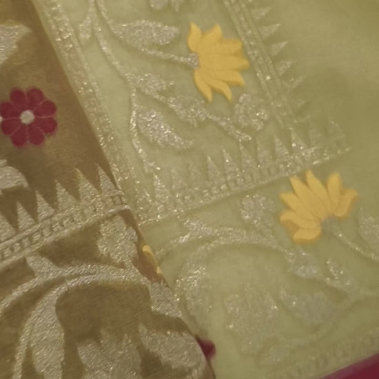 Pure Kora Silk Ektara Tilfi Cutwork Banarasi Saree